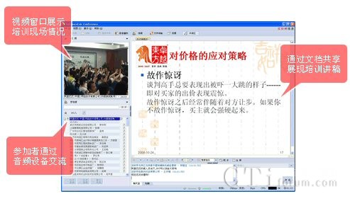 高清晰的視頻,可以讓網(wǎng)絡培訓用戶感受培訓現(xiàn)場氣氛。文檔共享和音頻可以讓用戶感受培訓人員的聲情并茂。同時用戶可以在網(wǎng)絡培訓系統(tǒng)的答疑區(qū)提出自己的問題,和培訓人員進行互動。