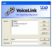 -  簡易且方便的管理:在現(xiàn)有的TCP/IP網(wǎng)絡(luò)的條件下,管理員或主管可以在任何地方遠程登陸到Voicelink服務(wù)器上,來進行錄音回放和管理。