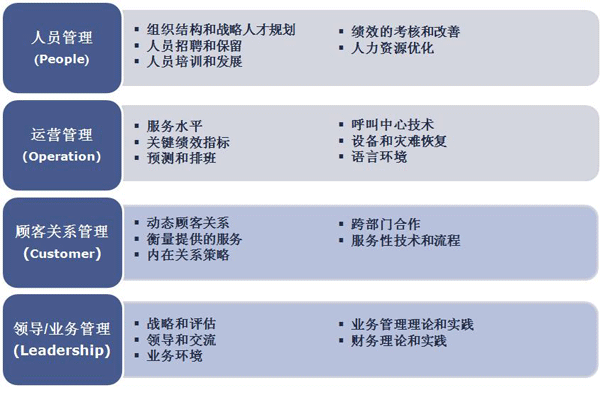 呼叫中心中高層管理人員認(rèn)證是為呼叫中心行業(yè)建立自己的“黃埔軍!薄Mㄟ^一系列的培訓(xùn),包含人員管理,運(yùn)營(yíng)管理,顧客關(guān)系管理和領(lǐng)導(dǎo)/業(yè)務(wù)管理,來為呼叫中心行業(yè)培養(yǎng)合適的中高層管理人員。