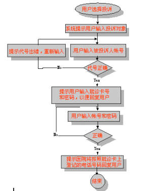在處理用戶投訴時(shí),要求對醫(yī)院所有服務(wù)人員分配代碼。用戶投訴時(shí)按照服務(wù)代碼進(jìn)行投訴。同時(shí),醫(yī)院將對所有投訴用戶進(jìn)行回復(fù)。如通告處理結(jié)果,向用戶道歉等。對用戶回復(fù)時(shí),將按照用戶在申請就診卡時(shí)留下的電話號(hào)碼進(jìn)行回復(fù)。這種也可以促使用戶留下真實(shí)的電話號(hào)碼。用戶可以到醫(yī)院電話號(hào)碼。