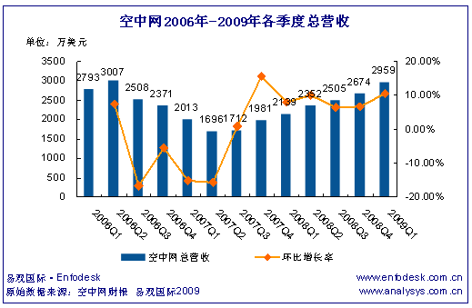 2009第1季度空中網總營收2960萬美元