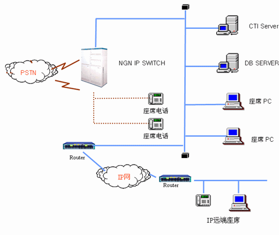 基于深圳某網(wǎng)絡(luò)購(gòu)物呼叫中心的需求特點(diǎn),HXD IP Switch擁有自己的CTI、IVR、錄音等核心功能,這些核心功能都由HXD公司提供,支持IP分布式坐席。單板平滑升級(jí)擴(kuò)容,交換機(jī)擁有電信級(jí)別的穩(wěn)定性,基本業(yè)務(wù)托管功能,能在應(yīng)用程序的PC down機(jī)的情況下進(jìn)行基本業(yè)務(wù)功能(例如電話接聽(tīng)等)。這一功能為企業(yè)的服務(wù)形象提供了有力保障。