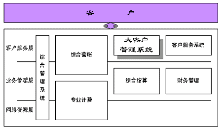 綜合電信業(yè)務(wù)服務(wù)支撐系統(tǒng)由專業(yè)計(jì)費(fèi)、綜合營帳、綜合客服、綜合結(jié)算和統(tǒng)一客戶資料等系統(tǒng)組成。其中的大客戶服務(wù)系統(tǒng)是電信運(yùn)營商面向大客戶提供服務(wù)的接口,通過大客戶市場開拓、大客戶信息收集及管理、大客戶服務(wù)及營銷、企業(yè)決策支持等一系列的活動(dòng),實(shí)現(xiàn)方便、快捷、高品質(zhì)的大客戶服務(wù)。