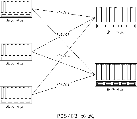 北京電信公眾IP網(wǎng)的接入節(jié)點(diǎn)與骨干節(jié)點(diǎn)之間的連接根據(jù)線(xiàn)路和帶寬的要求采用Packet Over SDH和千兆位以太網(wǎng)技術(shù)。