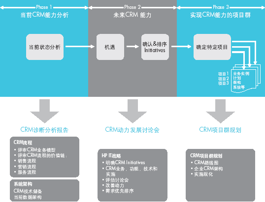 本階段,HP將指導(dǎo)客戶進(jìn)行未來CRM能力的開發(fā),具體操作由HP的CRM專家通過一系列的workshop來完成。