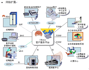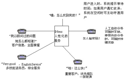 基于CTI(電信和計算機(jī)集成)技術(shù)和call center(呼叫中心)技術(shù)的INtess客戶服務(wù)平臺,積累網(wǎng)上600多套設(shè)備業(yè)務(wù)開發(fā)和運行實踐的經(jīng)驗,運用專業(yè)化的設(shè)計,全面解決電信客戶服務(wù)中的難題: