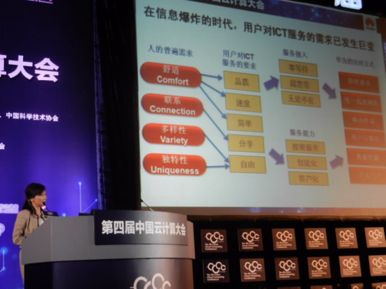圖片說(shuō)明:華為IT產(chǎn)品線(xiàn)副總裁朱近之女士在中國(guó)云計(jì)算大會(huì)做主題演講