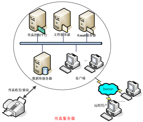| 文件服務(wù)器 | 實現(xiàn)傳真文件管理、制作和轉(zhuǎn)換。 |