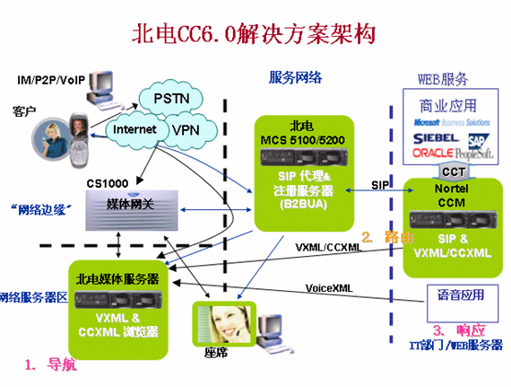 北電應(yīng)用中心CC6.0完全基于SIP架構(gòu),其解決方案架構(gòu)圖如下圖所示: