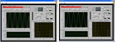 當兩個(或多個)設(shè)備一起工作并對時間有精確要求的時候,就需要在它們之間進行同步。同步是基于在兩個設(shè)備之間規(guī)定一個共同的時間參考,試想如果將不同音軌的音頻訊號分別錄在不同的磁帶機上,則必須將這兩個磁帶機的磁帶傳送軸鎖定在一起,否則將來撥放出來就會有相位上的誤差,這個過程就稱為同步。假使這兩個設(shè)備沒有進行同步,無論它們開始的時間多么一致,也會由于兩臺設(shè)備在機械結(jié)構(gòu)的差異而產(chǎn)生時間漂移。同樣的,對于數(shù)據(jù)采集卡也是一樣的概念,甚至在要求上更為嚴格。而如何達到數(shù)據(jù)同步采集,最基本的要求就是不同模塊間要有相同的工作時脈與一致的觸發(fā)信號,而這個相同的時脈信號需來自于共同的外部儀器。下圖中的弦波是兩張數(shù)據(jù)采集卡在同步與異步采集同一信號源所得的波形,在左圖中因異步而存在一向位差,右圖中則是同步觸發(fā)下得到完全重迭的波形。