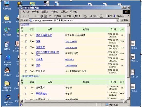 傳統(tǒng)郵件系統(tǒng)作為信息交換的手段在PC后的互聯(lián)網(wǎng)絡(luò)時(shí)代廣為運(yùn)用,但是,郵件系統(tǒng)一個大的缺點(diǎn)是離不開電腦。CTI技術(shù)技術(shù)通過傳統(tǒng)的電話網(wǎng)絡(luò)傳遞語音信息。電話網(wǎng)具有廣泛普及,人人使用這一特點(diǎn),這兩大技術(shù)的發(fā)展促使兩大技術(shù)的融合,那就是隨時(shí)隨地(anytime and anywhere)人們都可以通過電話,電腦使用郵件,訪問郵件。