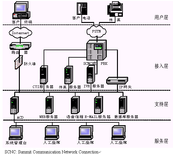 提供Internet接入的接口。采用Internet技術(shù),實(shí)現(xiàn)與客戶之間的交互式文本交談、IP語(yǔ)音交談,提供網(wǎng)頁(yè)連接/傳送接口。