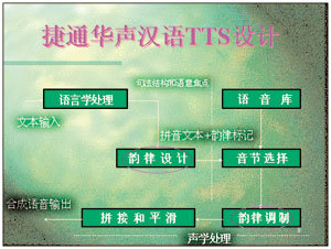 捷通為了加強在語音技術(shù)方面的研發(fā)實力,于去年聯(lián)合著名語音技術(shù)專家呂士楠先生,共同投資創(chuàng)辦了專門從事漢語語音技術(shù)研究和應(yīng)用的捷通華聲語音公司。由呂先生親自主持捷通華聲語音研發(fā)中心,并在TTS技術(shù)上不斷創(chuàng)新。去年2月,捷通的TTS實現(xiàn)了中英文混讀的功能;去年5月,實現(xiàn)語音合成技術(shù)在嵌入式操作系統(tǒng)中的移植;今年7月,推出語音質(zhì)量自然的語音合成系統(tǒng)。