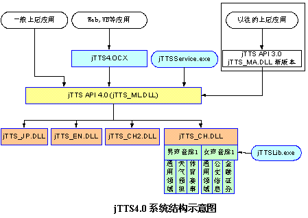 新版本的jTTS_MA.DLL是為了保持向下兼容,它完全繼承原有的jTTS API 3.0的所有函數(shù),不增加也不刪減任何函數(shù)。因此,它也僅能完成以前版本的功能(但可以利用最新的中文引擎,提高聲音質(zhì)量),提供它的目的僅僅在于用戶能夠不改動(dòng)原有程序繼續(xù)運(yùn)行,但如果希望使用新的功能,必須使用jTTS_ML.DLL,利用新的API進(jìn)行開發(fā)。