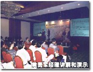 通過(guò)兩位演講者深入淺出的講解,看來(lái)聆聽(tīng)者已經(jīng)對(duì)文正明的iUnicenter網(wǎng)絡(luò)化客戶服務(wù)中心的構(gòu)成、應(yīng)用有了大致的了解,但與會(huì)的證券業(yè)人士關(guān)心的不僅是這套解決方案理論上的優(yōu)越,他們更渴望見(jiàn)到實(shí)際上的表現(xiàn)如何,于是,文正明公司規(guī)劃發(fā)展部付總經(jīng)理黃勇軍就用一氣呵成的模擬演示給了他們完美的答案。