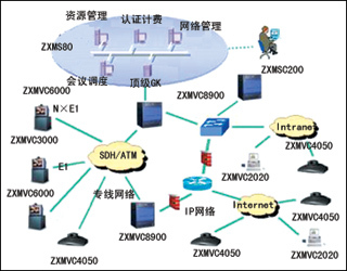 大型行政視訊系統(tǒng):以它為核心骨干,以320系統(tǒng)為延伸,以IP為補(bǔ)充,組建以專(zhuān)線方式為主的寬帶高清視訊系統(tǒng)。采用ZXMVC8900+ZXMVC6000組建網(wǎng)絡(luò)主體,在信道有限的地區(qū)采用ZXMVC3000終端,在信道有條件后可平滑升級(jí)到ZXMVC