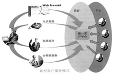 在以客戶服務(wù)中心為前臺(tái)的新型服務(wù)模式中,統(tǒng)一了客戶服務(wù)的平臺(tái)?蛻糁恍枰涂蛻舴⻊(wù)中心打交道,所有的問題都可以通過客戶服務(wù)中心解決。用戶只需要打一次電話即可解決所有問題!同時(shí),客戶服務(wù)中心作為一個(gè)信息島,統(tǒng)一與企業(yè)內(nèi)部各個(gè)部門、資源進(jìn)行溝通,以方便解決用戶的所有問題。