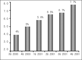 在美國的泡沫經(jīng)濟破滅、市場極度低迷的時候,歐洲又傳來第三代無線通信技術——WCDMA因產(chǎn)品、市場等諸多原因全面推遲的消息,這對本來就處于蕭條狀態(tài)的全球通信業(yè)來說,無疑雪上加霜。業(yè)內人士在不斷地尋找和探討,究竟什么樣的需求才是目前市場的驅動力?究竟什么樣的技術才能真正體現(xiàn)市場價值呢?