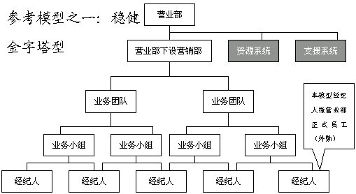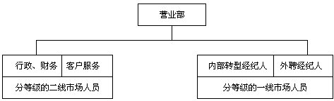 此五種模式建立在營業(yè)部基礎(chǔ)上,在券商總部,建議設(shè)立垂直的業(yè)務(wù)管理機構(gòu),即經(jīng)紀(jì)業(yè)務(wù)總部實行事業(yè)部制,下設(shè)分工專業(yè)的市場營銷部、客戶服務(wù)部、經(jīng)紀(jì)人訓(xùn)練部和綜合管理部等。