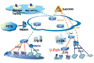 此方案的最大特點是將現有的不同地域及使用不同廠家的交換設備的用戶聯系起來,統(tǒng)一提供服務,可有效發(fā)揮綜合網絡的優(yōu)勢。該系統(tǒng)在中國網通的多個分公司已經有了比較大規(guī)模的實際應用。