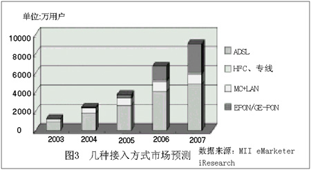因此,DSL和FTTH將會(huì)共同發(fā)展,在FTTH設(shè)備價(jià)格由于建設(shè)量的增大而逐步降低到DSL的水平后,就會(huì)逐步取代DSL,實(shí)現(xiàn)全光網(wǎng)絡(luò)。