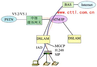 基于Ethernet接入提供分組話音歸根到底仍然是VoIP的解決方案,利用IAD支持H.248或SIP協(xié)議,可以順利地實現網絡的演進。VoIP