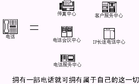 該方法的實(shí)施,可以讓每一個電話和強(qiáng)大的CTI系統(tǒng)聯(lián)系,一部電話將變成語音系統(tǒng)、傳真系統(tǒng)、電話會議系統(tǒng)、……。擁有這一切用戶只需要支付呼叫轉(zhuǎn)移的費(fèi)用。可以設(shè)想,以后開辦公司,只要申請電話,擁有ADSL上網(wǎng)的電腦,用戶在辦公室、在家,打開電腦,單擊進(jìn)入自己的語音系統(tǒng)、會議系統(tǒng),宣傳公司,召開會議,發(fā)送傳真。公司擁有、使用自己的、電信級的CTI系統(tǒng);所有CTI應(yīng)用系統(tǒng)的開發(fā),語音部分完全由電話接入服務(wù)商提供,……。