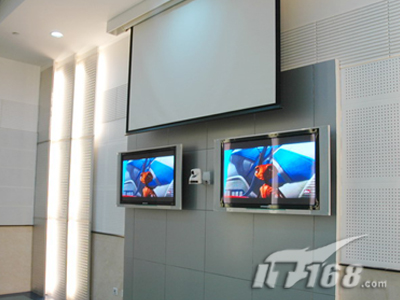 在副會(huì)場(chǎng)方面,和主會(huì)場(chǎng)區(qū)別不大,不過比主會(huì)場(chǎng)要光亮一點(diǎn),面積也小了很多,所以主顯示系統(tǒng)只需要SONY PX40正面投影(120寸)就可以搞定。VPL-PX40可以多種方式安裝,包括桌面正投,吊頂及背投。供選購(gòu)的兩款鏡頭擴(kuò)展了安裝的靈活性。中央控制開關(guān)功能讓用戶能通過中央電源開關(guān)直接開關(guān)投影機(jī)。VPL-PX40還配備了獨(dú)特的密碼認(rèn)證系統(tǒng),采用SONY液晶板的新型光學(xué)系統(tǒng),結(jié)合265W