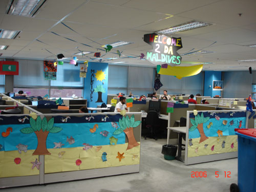 由于這種獨(dú)特的管理方式吸引了眾多的同行前來(lái)參觀,該中心特別安排了熱情的Sally負(fù)責(zé)導(dǎo)游。Sally帶我們參觀說的第一句話就是:“我真是喜愛我們的呼叫中心,這里的年輕人富有創(chuàng)意,充滿激情,他們非常喜歡在這里工作!庇谑俏覀儏⒂^了“蜘蛛俠”,“蒙娜麗莎”,“大英帝國(guó)”,“典雅餐廳”,“熱帶公園”,“幾何世界”,“海底世界”,“白色圣誕節(jié)”等不同的Pod,實(shí)在是好像到了聯(lián)合國(guó)。