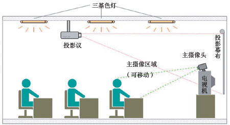 為了確保圖像的觀看效果和防止顏色對(duì)人物攝像產(chǎn)生的“奪目”或“反光”效應(yīng),背景墻應(yīng)采取單一均勻的淺顏色(但不宜用白色),使其產(chǎn)生的視頻信號(hào)電平近似0.35V,而會(huì)議室其他墻壁、桌布、地毯、天花板等應(yīng)與背景墻相匹配,攝像背景不宜使用畫(huà)幅。建議桌椅及墻壁采用淺駝色或淺青藍(lán)色,否則將增加攝像對(duì)象的信息量,不利于圖像質(zhì)量的提高。椅子不宜采用沙發(fā)式,也不宜采用高靠背,避免擋住后面的與會(huì)者。