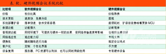與傳統(tǒng)的硬件視頻會議系統(tǒng)相比較,軟件視頻會議系統(tǒng)可以利用現(xiàn)有的網(wǎng)絡環(huán)境和計算機設備,并能夠提供不遜色于硬件系統(tǒng)的音視頻質(zhì)量和更為豐富的數(shù)據(jù)協(xié)作功能; 同時,物美價廉的系統(tǒng)投資和靈活方便的配置也是軟件視頻會議產(chǎn)品非常引人關注的優(yōu)勢。