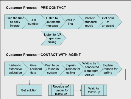 那么,從企業(yè)內(nèi)部的觀點(diǎn)出發(fā)看我圍繞這次簡(jiǎn)單的預(yù)定流程所產(chǎn)生的總體客戶體驗(yàn)如何呢?這需要好好評(píng)估,我一共只打了兩次電話并在24小時(shí)內(nèi)得到解決,而且我們之間的互動(dòng)——很有可能——已經(jīng)被記錄在航空公司的CRM系統(tǒng)中。但是如果你問問作為客戶的我,我會(huì)給出一個(gè)完全不同的場(chǎng)景描述:首先,提供給我的可聯(lián)絡(luò)電話號(hào)碼實(shí)在太多了,其次,沒有說明這些電話號(hào)碼處理的“范圍”各是什么,再次代理質(zhì)量不合格,她完全不知道自己該干什么,還得求助于另外一個(gè)同事,最后,也是很重要的一點(diǎn),最終提交的解決方法并不能讓人接受。這些信息——或者說的更準(zhǔn)確些,客戶的評(píng)價(jià)——出現(xiàn)在呼叫中心的報(bào)告里了嗎?出現(xiàn)在哪兒?沒有,這一方面是因?yàn)榱鞒滩⒉皇且钥蛻魹橹行牡挠^點(diǎn)來定義的,另一方面因?yàn)槲覀兪侨,我們努力的在工作,不希望自己變成透明人?