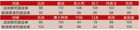 調查結果顯示,超過50%的受訪者會在家里使用手機打電話,在中國和韓國,這一比例甚至高達90%。在家使用手機上網的情況剛好相反,大部分的被調查者表示他們不會在家使用手機上網,相比之下,中國和日本用手機在家上網的人數較其它國家多一些。