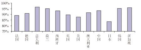 由于所調查的大多數是成熟市場,因此大多數國家的移動電話普及率超過75%。其中,普及率超過90%意味著有的用戶可能有幾張SIM卡。