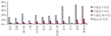 在那些少數愿意購買手機電視和電影大片的被調查者中,大部分人愿意每月支付不超過3英鎊的費用。其中,中國、韓國、新加坡的支付意愿較高,歐洲的意大利其次,其23%的被調查者也表示愿意每月支付不超過3英鎊的費用。愿意每月支付3英鎊以上的用戶非常少,在韓國、日本、新加坡這樣的國家,也只有不到11%的人表示愿意每月支付不超過5英鎊的費用。(見圖6)