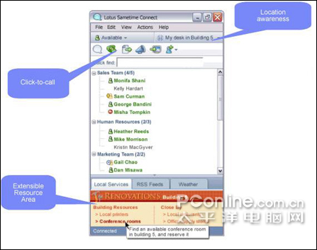 Lotus Sametime Advanced還將擁有多項(xiàng)高級(jí)協(xié)作特性(如持久聊天),可支持用戶將關(guān)于特定話題的持續(xù)討論與相關(guān)人群聯(lián)系在一起。Lotus