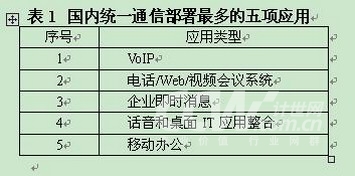“在統(tǒng)一通信包括的20多項(xiàng)應(yīng)用中,目前部署最多的應(yīng)用包括VoIP、話音和桌面IT應(yīng)用整合、企業(yè)即時(shí)消息、電話/Web/視頻會議系統(tǒng)等!北彪娊y(tǒng)一通信發(fā)言人在接受記者采訪時(shí)表示。