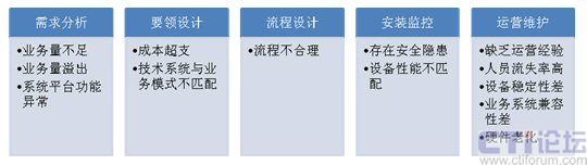 要領(lǐng)設(shè)計(jì)階段風(fēng)險(xiǎn):在該階段,企業(yè)將決定呼叫中心的建設(shè)規(guī)模、技術(shù)設(shè)備、組織架構(gòu)及運(yùn)營(yíng)模式等一系列環(huán)節(jié)。此過程中,最容易且是最嚴(yán)重的風(fēng)險(xiǎn)在于成本估算的差異和技術(shù)系統(tǒng)與業(yè)務(wù)模式的不匹配。多數(shù)企業(yè)在呼叫中心建設(shè)成本估算時(shí)由于經(jīng)驗(yàn)的缺乏無法全面預(yù)測(cè)建設(shè)成本,特別是對(duì)運(yùn)營(yíng)費(fèi)用的把握常常相差數(shù)倍。因此,實(shí)際建設(shè)成本過分超出預(yù)算成為困擾項(xiàng)目執(zhí)行者的一大難題。這就使得企業(yè)對(duì)呼叫中心的投入猶如一個(gè)無底洞,一投再投,嚴(yán)重影響了企業(yè)資金鏈的正常運(yùn)轉(zhuǎn),也為呼叫中心的“成本”角色加重了色彩。此外,很多公司或者系統(tǒng)集成商因?yàn)槌跏纪度氤杀、建設(shè)經(jīng)驗(yàn)或者運(yùn)營(yíng)經(jīng)驗(yàn)等方面的限制,在呼叫中心建設(shè)初期很重視技術(shù)平臺(tái)的建設(shè),但忽視了運(yùn)營(yíng)思想在系統(tǒng)方案中的體現(xiàn),在系統(tǒng)建成后,再去完善運(yùn)營(yíng)系統(tǒng),這樣極大地增加了呼叫中心的運(yùn)營(yíng)和管理成本,也影響到管理效率。