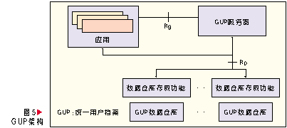 GUP中一個用戶相關(guān)的數(shù)據(jù)由多個數(shù)據(jù)組件構(gòu)成,每個組件又可以包含多個數(shù)據(jù)單元。在網(wǎng)絡(luò)中用戶數(shù)據(jù)每個數(shù)據(jù)組件只有一個主實例,但是可以有多個復(fù)制實例。用戶數(shù)據(jù)以組件為單元可以存放在不同的網(wǎng)絡(luò)實體中,應(yīng)用可以通過統(tǒng)一的訪問入口以標(biāo)準(zhǔn)接口訪問所有授權(quán)的數(shù)據(jù),這個入口功能由GUP