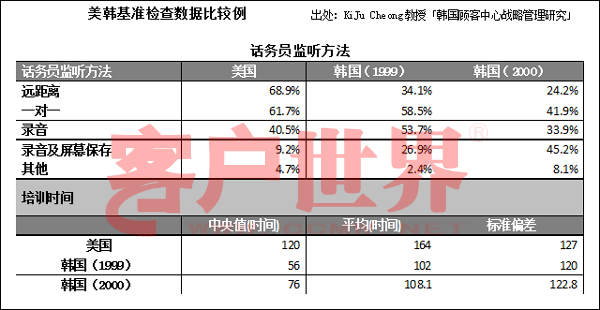 上圖是全南大學教授Ki Ju Cheong調(diào)查比較韓國和美國客服中心后的報告書的一部分。Ki Ju Cheong教授自稱是因分析客服中心標準指數(shù)聞名于世的美國Purdue大學安東博士的學生。通過這個圖表可以簡單看出韓國客服中心經(jīng)營的改善狀況。