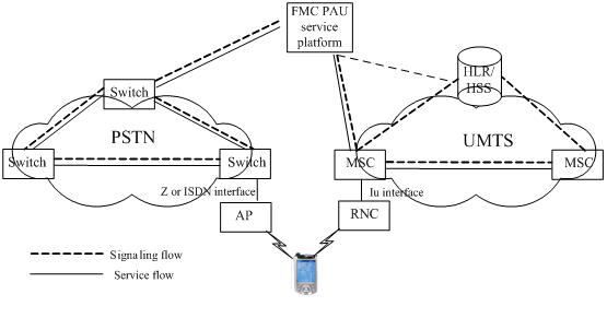 在FMC-PAU中,移動終端屬于雙模或多模終端,用戶使用該終端既可以接入到3G移動網(wǎng),也可以采用無線方式通過接入節(jié)點(diǎn)(AP)接入到PSTN網(wǎng)絡(luò)中。