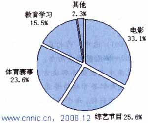 同時,CNNIC還指出,在手機(jī)視頻用戶關(guān)注的內(nèi)容中,電影內(nèi)容位居第一,比例達(dá)到了33.1%,為手機(jī)設(shè)計的小電影節(jié)目,有很強(qiáng)的針對性,其內(nèi)容非常適合手機(jī)播放,在時間、節(jié)奏等方面,都有很好的控制,由于針對性地做了優(yōu)化,也成為手機(jī)視頻中最受用戶喜歡的業(yè)務(wù)。而綜藝節(jié)目和體育都有其特定的喜歡群體,使用關(guān)注度也非常高,分別為25.6%和23.6%。