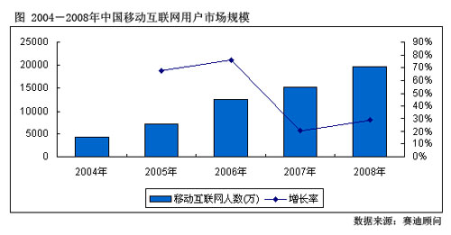 圖:2004-2008年中國移動互聯(lián)網(wǎng)用戶市場規(guī)模