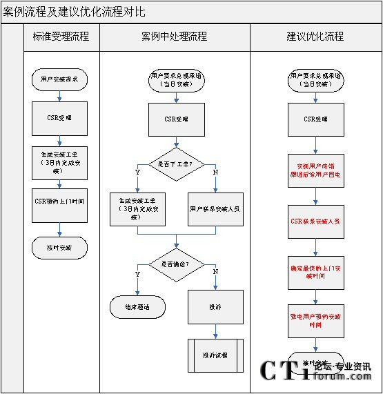通過(guò)對(duì)比,很明顯后者減少了流程中的關(guān)鍵角色,提高了流程的執(zhí)行效率。CSR直接為用戶(hù)提供了“一站式服務(wù)”,用戶(hù)只需要通過(guò)一個(gè)電話(huà)便能解決問(wèn)題,而至于CSR與安裝人員的工作協(xié)調(diào),完全不需要用戶(hù)去介入。