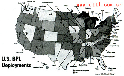 圖1 美國(guó)電力公司在全國(guó)各地開(kāi)展的BPL試驗(yàn)
