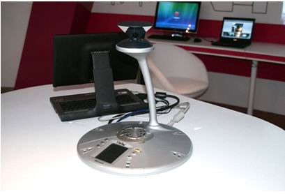 在耐心聽完介紹后,禁不住誘惑,我便親自做了現(xiàn)場體驗,原來這套系統(tǒng)所使用的360o攝像頭不同于一般的攝像頭,它集4個攝像頭以及USB設備為一體,不改變位置就能輕松實現(xiàn)360度全景覆蓋,讓所有人真正面對面交流。而投影儀的界面設定更是人性化,界面分上下兩部份,上半部分顯示的是PPT內容和發(fā)言者,下半部分顯示的是與會人員。而它的智能語音識別系統(tǒng)更是讓人叫絕,投影儀上的發(fā)言區(qū)頭像根據發(fā)言者的聲音自動更換,而不受人聲以外的任何聲音的干擾。系統(tǒng)并附帶情景解說詞,系統(tǒng)會自動介紹與會人員所在地。在投放PPT界面旁邊有個信息欄,在上面能夠看到負責人的在線信息,并且可以選擇最合適的方式進行溝通,不但可以發(fā)即時消息和傳輸文件,還可以進行語音通話,甚至可以直接用語音連接辦公室電話,只要有網絡,隨便哪里都可以接得到辦公室電話。