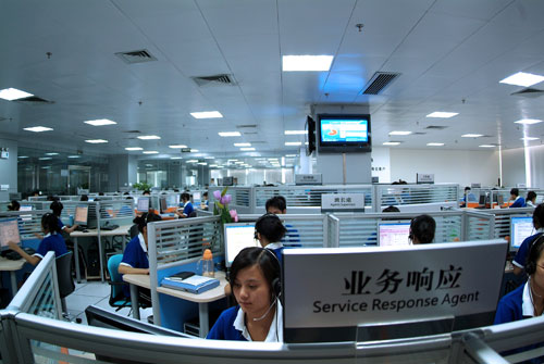 廣西廣電網(wǎng)絡(luò)客戶(hù)服務(wù)呼叫中心是目前國(guó)內(nèi)性能最先進(jìn)的呼叫中心,投資7000萬(wàn)元的語(yǔ)音交換系統(tǒng)平臺(tái),與廣西廣電運(yùn)營(yíng)支撐(BOSS)系統(tǒng)相連接,與全區(qū)90個(gè)市、縣分公司實(shí)現(xiàn)工單系統(tǒng)互聯(lián)互通。呼叫中心配置了150個(gè)席位,80%以上話(huà)務(wù)人員大專(zhuān)以上畢業(yè),中心每天使用英語(yǔ)、越南語(yǔ)、老撾語(yǔ)等15個(gè)語(yǔ)種為客戶(hù)提供服務(wù)。
