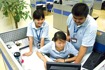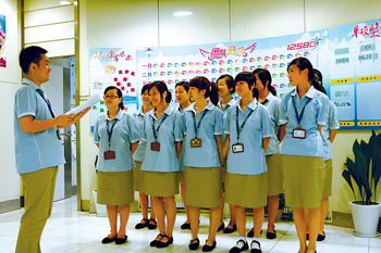 “玉不琢,不成器!彪m說目前社會的就業(yè)壓力源自于復(fù)雜的社會原因,可是在客服中心人力資源室的陳依群主管看來,有些還在于80后年輕人的自身原因!斑@些年我做招聘工作以來,看到了一些年輕人抱著希望進來以后,因為受不了壓力又退出了。在就業(yè)壓力巨大的情況下,多是獨生子女的80后一代,還沒有完全樹立起正確的就業(yè)觀和務(wù)實的工作態(tài)度。我們的原則是,凡是進入我們公司的員工和見習學生,都要經(jīng)歷嚴格的培訓,接受規(guī)范的管理,接受我們公司企業(yè)文化的熏陶。通過見習,我們也發(fā)現(xiàn)了很多真正會發(fā)光的優(yōu)秀人才。”