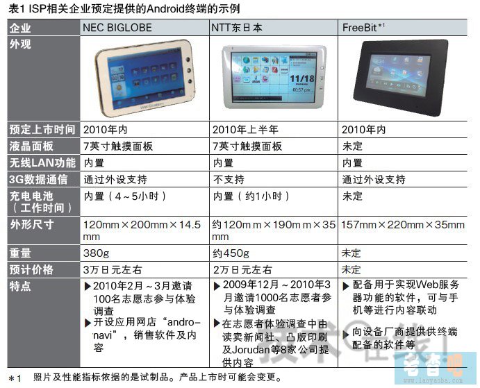 有類似舉措的并非只有NEC BIGLOBE一家。以ISP相關(guān)企業(yè)為中心,通信運(yùn)營(yíng)商涉足Android終端業(yè)務(wù)的行動(dòng)在2010年將不斷出現(xiàn)(表1)。