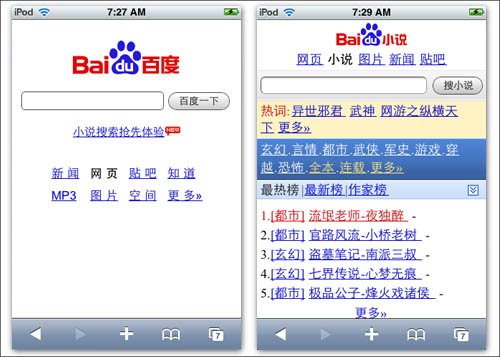 百度推出掌上百度、百度手機(jī)輸入法、百度快搜、百度地圖移動(dòng)版等產(chǎn)品后,如今又推出了百度Wap小說搜索頻道。以后我們可以直接拿手機(jī)上百度看小說,不用麻煩先在電腦上搜索好并下載復(fù)制過來,這給廣大用戶在線閱讀提供了方便。